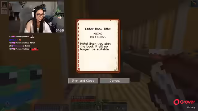 04:56:39Es wird klar, dass das gesammelte Buch für Heiko nicht nur ein Geburtstagsbuch, sondern ein "Interventionsbuch" ist, das die Gründe aufzählt, warum Heiko Craft Attack verlassen sollte. Die Streamerin muss noch Moos für die Mitte besorgen und drängt Marcel zur Eile, da sie noch Inhalte aus Offline-Chats und eigenen Notizen kopieren muss. Es wird erwähnt, dass Papaplatte's Offline-Chat und der eigene Offline-Chat ebenfalls Beiträge zum Buch geleistet haben. Die Zeit drängt, da das Buch in 10 Minuten fertig sein muss und noch ein Lectern hinzugefügt werden soll. Die Streamerin äußert den Wunsch, dass das Buch alle Seiten löscht und Heiko keine Benachrichtigung dazu erhält, um die Überraschung zu wahren.