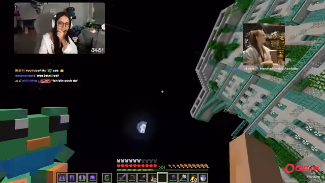01:14:59Der Streamer realisiert, dass er zu weit geflogen ist und bespricht die Teambildung für das bevorstehende Item-Battle. Er stellt fest, dass Gambo mit Dima und er selbst mit Chef Strobl im Team ist, was ihm gute Gewinnchancen verspricht. Es wird über die Notwendigkeit gesprochen, die Stimme zu ölen und die Warnung vor dem Team 'Wichtiger Fuchsel' wird erwähnt, wobei betont wird, dass alles in Ordnung sei. Die Teilnehmerzahl ist vollständig mit zwölf Personen inklusive des Streamers. Alle werden angewiesen, ihm zu folgen, um zu einer Location in 2.000 Blöcken Entfernung zu reisen. Es wird festgestellt, dass Betten in den Shulker-Kisten vergessen wurden, aber der Streamer hat bereits 14 eingefärbte Betten dabei. Die Koordinaten für den Flug werden mit minus 7870 und minus 7870 angegeben, und es wird geprüft, ob alle genug Raketen haben.
