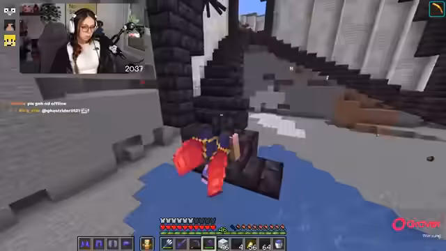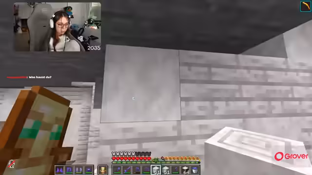 00:26:44Neben der Jagd nach dem Ei widmet sich die Streamerin dem Bau der Basis. Insbesondere wird der Ausbau eines Kellers vorangetrieben, um dort unter anderem eine Lava-Farm mit einem angebauten Ofen und später eine Supersmelteranlage einzubauen. Dabei stößt sie auf technische Herausforderungen, insbesondere bei komplexen Redstone-Mechanismen, die sie durch Anleitungen aus dem Chat lösen muss.