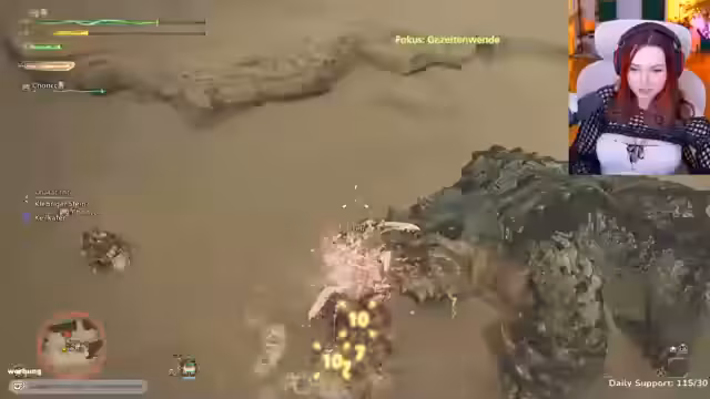 02:13:59Die Streamerin findet, dass ihr Charakter wie eine gute Monsterjägerin aussieht und nimmt noch kleinere Anpassungen vor. Sie entdeckt die Option, die Körperhaltung anzupassen und bemerkt die Physik der Brüste im Spiel. Sie wählt eine grüne Rüstung und findet, dass ihr Grün gut steht. Nach der Charaktererstellung beginnt das eigentliche Spiel. Sie wird von einer Stimme begrüßt, die an ein junges Mädchen erinnert. Die Story dreht sich um ein verbotenes Land und ein ausgestorbenes Monster. Die Streamerin erhält eine Extraaufgabe. Sie findet ihren Charakter süß und freut sich über die Follows im Chat. Das Spiel beginnt mit einer Rettungsmission für kleine Kinder. Die Streamerin steuert ihren Charakter und ein katzenartiges Wesen namens Schock durch die Spielwelt. Sie gleitet mit Echo-Flügeln und setzt Schreikapseln ein, um Monster abzulenken und den kleinen Jungen zu retten. Dabei wird sie von Timo mit Essen versorgt.
