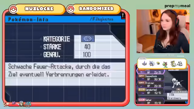 02:48:03Nach dem anstrengenden Kampf gegen Dressella, der als einer der härtesten in diesem Nuzlocke-Run beschrieben wird, muss die Spielerin feststellen, dass Urban erneut nicht fliehen kann. Es wird erwähnt, dass Urban sich auf Level 36 entwickeln wird. Die Spielerin erinnert an die Möglichkeit, sich für das Community-Artwork zu qualifizieren, indem man 10 Subs oder 3000 Bits spendet und sein Lieblings-Pokémon nennt. Sie trifft auf einen NPC, der die Verbindung zwischen Menschen und Pokémon in der Höhle erforscht. Es wird bedauert, dass ein Kangama nicht gefangen werden konnte. Nach einem Rätsel in der Höhle, das die Spielerin als „Kinderrätsel“ bezeichnet und bei dem sie Schwierigkeiten hat, findet sie einen Ausgang. Sie trifft auf einen Trainer mit einem Meloetta, einem weiteren legendären Pokémon. Nach dem Kampf, bei dem Arnie und Silicious eine wichtige Rolle spielen, heilt sich die Spielerin bei dem Trainer. Sie erhält einen Meisterball als Belohnung und spekuliert über zukünftige legendäre Begegnungen. Geraldine, die Arenaleiterin, wird getroffen und bittet die Spielerin, im Turm des Himmels zu warten, bevor sie sich dem Arena-Kampf stellt. Die Spielerin beschließt, zuerst den Turm des Himmels zu besuchen, um weitere Pokémon zu fangen und ihr Team vorzubereiten. Kel wird wieder ins Team aufgenommen, und Divi wird vorübergehend abgelegt, um später für Fänge eingesetzt zu werden. Ein weibliches Heatran wird mit dem Meisterball gefangen und erhält den Namen Fuli, was das Team stärkt. Die Spielerin überlegt, welche Teammitglieder sie für die bevorstehende Arena behalten soll.