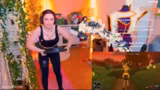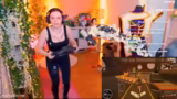 01:32:07Der Fortschritt am Cosplay-Projekt wird gezeigt. Ein Handschuh ist fast fertig, eine Beinschiene für den Charakter Jin aus League of Legends ist komplett und eine Maske wird erwähnt. Die Streamer präsentiert das fertige Cosplay im Hintergrund und inszeniert sich als böser Geist, der "Non-Subs" jagen und ihren Twitch Prime-Status fordert. Anschließend wechselt sie zur Ringfit-Sitzung, wo sie sich mit den Chattern über verschiedene Sportarten und den Zustand ihrer Ausrüstung austauscht.