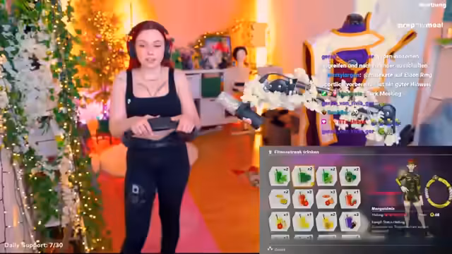 03:43:04Es wird überlegt, einen Kampf im Spiel anzunehmen, um das Level zu erhöhen. Die Yoga-Übungen, insbesondere die Drecksboots-Haltung, werden thematisiert, aber verworfen, stattdessen sollen Kniehebel durchgeführt werden. Das Spiel ist für die Switch erhältlich. Es wird überlegt, ob das Spiel auch für Konsolen verfügbar ist. Es werden verschiedene Rezepte im Spiel gefunden, darunter Orangenmandelmilch, Granatapfel, Blaubeer- und Aprikosenmandelmilch. Es wird erwähnt, dass der Streamer bereits 200 Kalorien verbrannt hat und fast 84 Leute zuschauen.