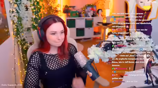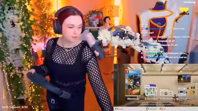 01:30:40Es wird ein neuer Community Tag am Ostermontag angekündigt. Fortschritte beim Cosplay werden gezeigt, darunter ein fast fertiger Handschuh und eine Beinrüstung für Ginny. Es wird gescherzt, dass Non-Subs mit einer Pistole bedroht werden, bis sie ihren Twitch Prime geben. Ein Kompliment wird dankend angenommen, aber es wird darum gebeten, nicht anzüglich zu werden. Es wird angekündigt, dass Con-Besucher gejagt werden, und es wird mit der geringen Körpergröße gescherzt, die es ermöglicht, Kniekehlen aufzubeißen. Ein Community-Treffen am 24.05. in einem Brettspiele-Café wird erwähnt, bei dem Brettspiele gespielt und eine kleine Rallye organisiert werden soll. Es wird scherzhaft auf den Crazy Frog verwiesen und überlegt, eine League of Legends Parodie von Shirin Davids Song zu machen. Es wird klargestellt, dass keine Links im Chat erlaubt sind, außer Amazon Links.