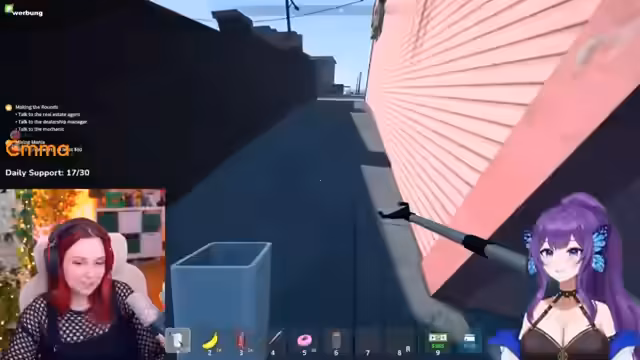04:26:08Der Streamer hat einen Termin mit Streamerin Himei und startet einen gemeinsamen Stream. Nach anfänglichen technischen Schwierigkeiten beim Einrichten der Kameras und des gemeinsamen Chats, schaffen es die beiden, ihre Videos zu spiegeln und die Verbindung herzustellen. Bevor sie ins eigentliche Gameplay eintauchen, stellen sie sich kurz dem jeweiligen Chat vor. Himei beschreibt sich als Schmetterling-VTuberin, die hauptsächlich Chatting und Reaktionen macht, während Feli sich als kreative Mausi mit Cosplay-Hintergrund vorstellt.