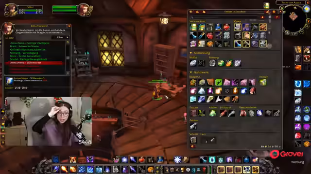 00:34:45Nach der Rückkehr auf Level 60 legt der Streamer die Prioritäten für die Gruppe fest. An erster Stelle steht das Fertigskillen der Berufe, insbesondere Verzauberung und Schneiderei, um den Gildenmitgliedern helfen zu können. Für die Verzauberung sind grüne Items aus dem Verlies nötig, während für die Schneiderei Runenstoff und Leder benötigt wird, um große Taschen herzustellen. Parallel dazu wird die Angst vor Instanzen geäußert, da viele Spieler dort gestorben sind, daher wird geprüft, ob erfahrene Spieler wie Sieglinde oder Dalu für Gruppen zur Verfügung stehen.