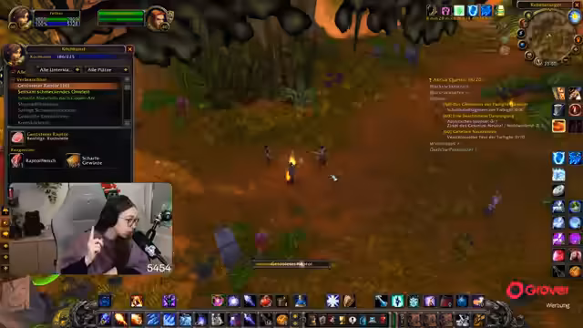 02:25:41Nach einer anfänglichen Unterbrechung, welche eine seltsame Leerheit hinterlassen hat, wird das Spiel wieder aufgenommen. Die Streamerin und ihr Mitspieler Zeus, der von ihr als 'Gruppenlieb' bezeichnet wird, konzentrieren sich auf ihre Aufgaben und das gemeinsame Leveling. Ein Augenmerk liegt darauf, dass sie versehentlich Mobs bekämpfen, die 30 Level unter ihnen sind, was sie als 'krank' empfindet. Das Ziel ist es, die Erledigung von Quests und das Farmen von Ressourcen wie Raptor-Fleisch und Bussardflügel voranzutreiben, um wichtige Kochrezepte zu erlernen. Der Fokus liegt auf einer gemeinsamen, effektiven Spielerfahrung.
