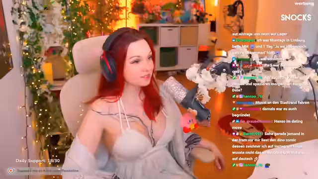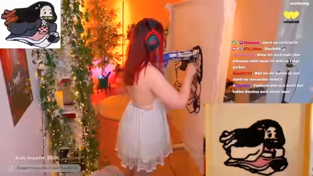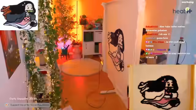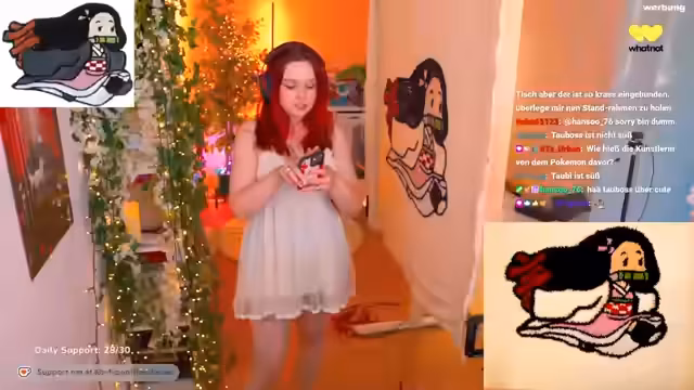 00:21:32Während des Streams wird mit der Herstellung eines Nezuko-Teppichs für Grinser begonnen. Feli diskutiert technische Aspekte wie die Installation von Lost in Random und stellt ein TTS-System ein, das Chatnachrichten vorlesen kann. Sie richtet eine zweite Kamera für die Rückseite des Teppichs ein und testet die Mikrofone für eine optimale Audioqualität. Die Zuschauer werden ermutigt, Geschichten zu schreiben während sie zuschauen.
