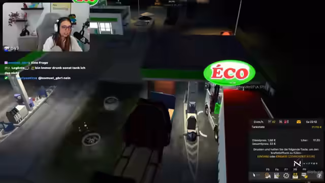 01:21:46Der Stream erinnert sich an einen Aufenthalt in Rotterdam, wo sie und ihre Gruppe bei einem Hotel um Cookies baten und später eine Pizza bestellten, wobei die Gruppe extrem lachte. Dies führt zu einem Gespräch über die Graphikeinstellungen im Spiel und die Nützlichkeit einesControllers gegenüber Tastatur und Maus. Die Streamerin teilt ihre Erfahrungen mit ETS 2 und betont, dass das Spiel nicht wie GTA ist, sondern eine Simulation, die viel Konzentration erfordert, besonders bei der Spurhaltung.