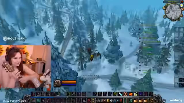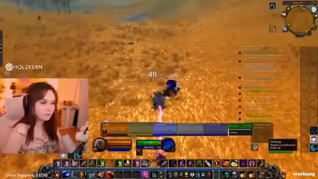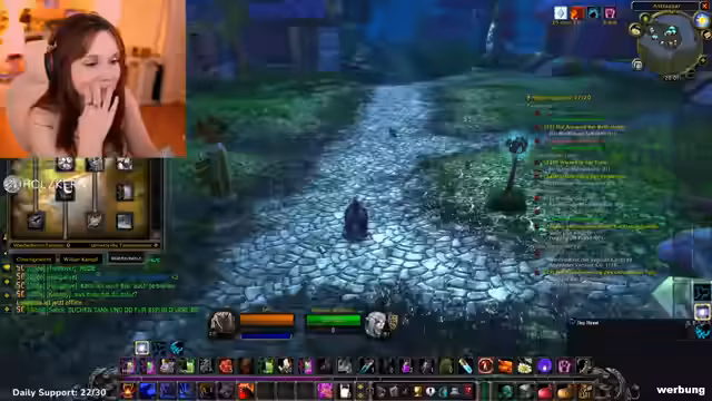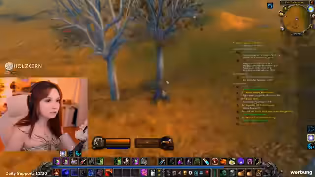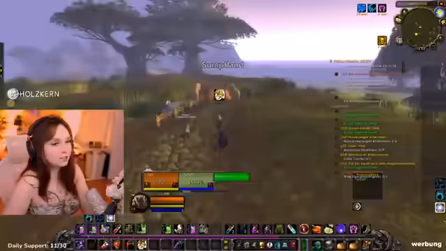 10:11:55Nach dem Tank-Training reist die Streamerin mit der Gilde nach Ashenvale, um neue Quests zu erledigen und ein Kochbuch zu besorgen. Unterwegs trifft sie auf zahlreiche Gegner, hauptsächlich Spinnen und Bären, gegen die sie kämpft und lootet. Der Stream ist von unvorhergesehenen Ereignissen, wie dem Verpassen von Flugpunkten und dem Entdecken zu starker Gegner, geprägt, was die Reise verlangsamt.