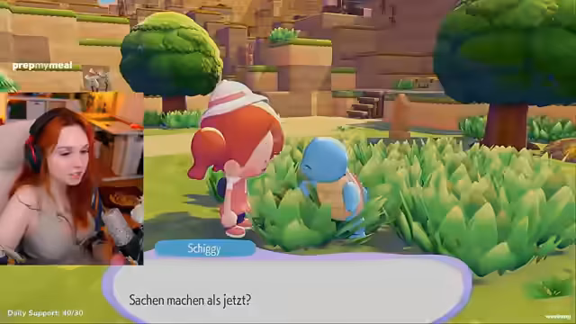 02:56:36Nach den anfänglichen Diskussionen wechselt der Stream zur Unterhaltung und startet das Spiel 'Pokémon Pocopia'. Die Streamerin erschafft ihren Charakter 'Fili' und nimmt das süße Ditto in ihr Team auf. Sie interagiert mit der Spielwelt, rettet ein vertrocknetes Shiggy und stellt fest, dass sie über eine wundersame Kraft verfügt, die verwelkte Landschaften wiederbeleben kann. Das Ziel ist es, die Welt wieder bewohnbar zu machen und Pokémon sowie hoffentlich auch die Menschen zurückzubringen.