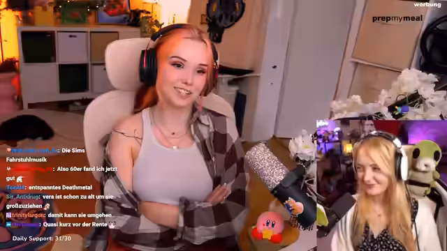 04:32:35Nach dem technischen Aufbau beginnt der gemeinsame Stream mit Vera. Die Atmosphäre ist entspannt und humorvoll, sie führen ein lockeres Gespräch und interagieren mit dem Chat. Vera stellt sich vor und erzählt von ihrem Studio, das sie als 'cozy' beschreibt. Es werden persönliche Themen wie die Videoqualität, Haarfarbe und Herkunft angesprochen. Der Streamer zeigt sich offen für Fragen und unterhält sich über verschiedene alltägliche und spielerische Themen, was den Stream abwechslungsreich macht.