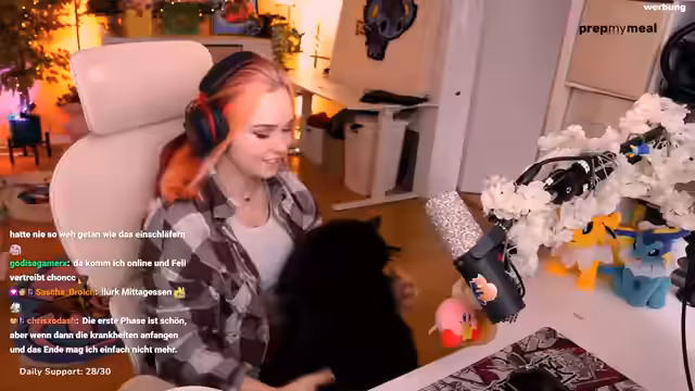 01:20:29Es werden Pläne für das Spielen von Spielen wie Anno und Story of Seasons vorgestellt, was die angedachte Aktivität für den Stream war. Allerdings entsteht bei dem Streamer ein Gefühl der Enttäuschung, da er das Gefühl hat, dass die Zuschauer nur wegen der Katze Chonk im Stream sind und nicht wegen seiner Person. Dies führt zu einem Moment der Niedergeschlagenheit und einem Blick auf den Rest des Tages, der ein Treffen mit einer Freundin umfasst.