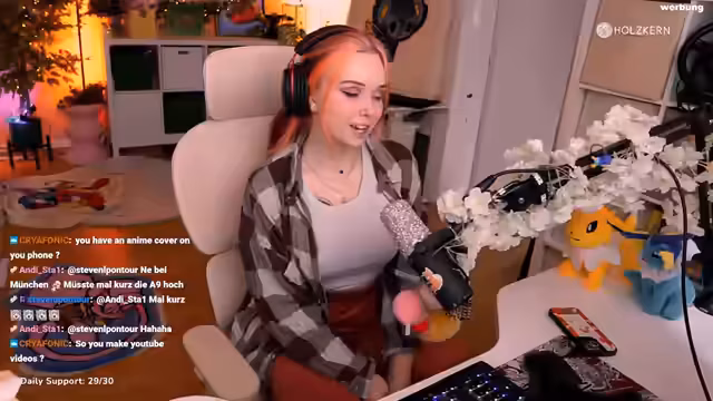 00:30:18Die Streamer gibt eine große Ankündigung: In einer Woche fliegt sie nach Japan. Um während des Urlaubs dennoch Inhalte zu produzieren, hat sie Streaming-Vertretungen organisiert. Vera, Rico und Ivaldris werden an festen Tagen Streams für ihr Publikum machen. Das Programm umfasst Karaoke-Streams, Souls-Games wie Elden Ring und gemütliche Art-Streams. Damit soll der Druck während des Urlaubs reduziert und den Zuschauern ein abwechslungsreiches Angebot geboten werden.
