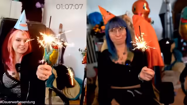 06:17:17Die Stimmung wird verspielter, als es um die Vorbereitung von Dekoration für einen anstehenden Anlass geht. Zusammen mit Malekete werden Heliumballons aufgeblasen und Pokémon-Figuren daran befestigt. Es kommt zu humorvollen und teilweise anstößigen Diskussionen über die korrekte Anwendung der Ballons und die Behebung von technischen Problemen während des Streams. Die Streamerin und ihr Partner bereiten alles für eine Party vor, die auf den Ballons steht.