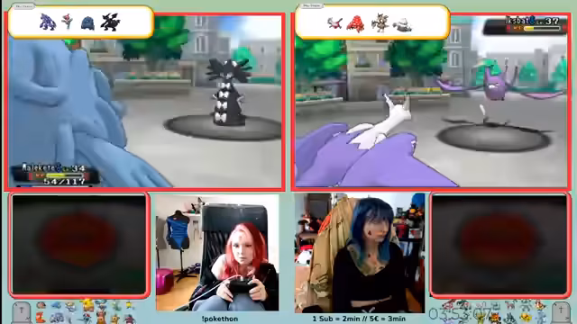10:12:37Das Spiel wird nach dem Zeitende fortgesetzt, um den Arenakampf zu absolvieren. Die Streamerin stellt sich der Arenaleiterin und beginnt einen Doppelkampf. Ihr Pokémon Glurak muss sich bewähren, während Cyrus, ein Wassereis-Pokémon, gegen ein starkes Togekiss antreten muss. Der Kampf wird lang und zäh, da Togekiss ständig Synthese einsetzt, um sich zu heilen. Dies erfordert taktisches Geschick und Geduld, um das gegnerische Pokémon letztendlich zu besiegen und den Sieg in der Arena zu erringen.