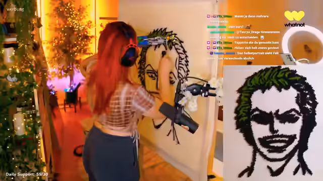 04:00:20Der Streamer zeigt den Fortschritt seines Zorro-Teppich-Projekts und erklärt die Schritte des Tuftings, einschließlich Schattenhervorhebung und Farbwahl. Er diskutiert über die Schwierigkeiten bei der Umsetzung, wie das Färben der Wolle und das Ausfüllen der Details wie Ohren und Mund. Er erwähnt auch den Spaß an kreativen Projekten und die Wertschätzung für die Unterstützung der Community.