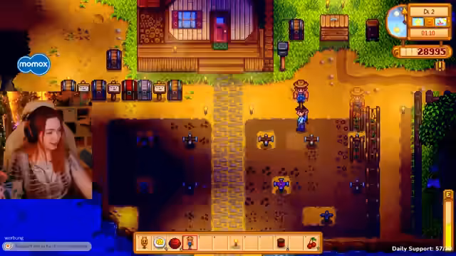 06:12:33Der Streamer spielt Stardew Valley, um den Stream zu genießen und sich abzulenken. Er berichtet über seine Farmaktivitäten, Käseproduktion und Tierpflege. Er betont, dass er sich über die Community freut, die ihm während seines Streams Gesellschaft leistet, da es ihm mental nicht gut geht und er nicht allein sein möchte.