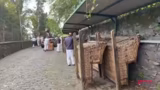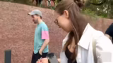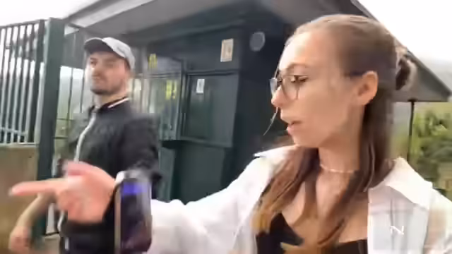 03:00:21Auf dem Weg zur Seilbahn machen die Gruppe einen Abstecher zu einem kleinen Sportpark, der am Wegesrand liegt. Dort probieren sie verschiedene Sportgeräte aus, wie ein Klettergerät und eine Art Reck. Der Streamer ist beeindruckt von der Anlage und vermutet, dass es sich um eine öffentliche Fitnesszone handelt. Die Aktivität wird spontan als Teambuilding-Moment inszeniert, bei dem die Teilnehmer die Geräte ausprobieren und die Streamerin die Szenen filmt. Anschließend geht die Gruppe weiter zur Seilbahnstation.