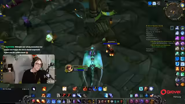 07:04:43Der Streamer startet einen Raid in den Arathi Highlands. Er beklagt technische Probleme wie Soundeffekte und stellt fest, dass sein Headset vielleicht kaputt sei, tatsächlich jedoch der Boss ein Brummgeräusch von sich gebe. Es kam zu Problemen mit der Aggro und dem Bosskampf, bei dem ein Mitspieler gestorben ist. Der Streamer sprach von einem schwierigen Bosskampf und fragte, wie man es am besten angehen solle.