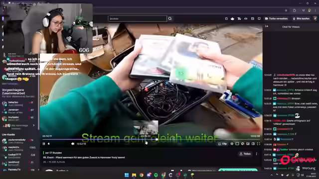 05:54:23Die Sprecherin preist den Streamer Fassler, der ausschließlich Flohmarkt-Content erstellt und als sehr herzenslieber Mensch beschrieben wird. Sein einzigartiges Konzept beinhaltet das Aufkaufen von Flohmarkt-Fundstücken und deren Versteigerung im Chat, wobei Zuschauer sich für eine exklusive Seite anmelden können. Sie erwähnt einen spektakulären Clip, in dem er morgens um 5 Uhr auf einem Flohmarkt gestreamt hat und bewundert seine Expertise auf diesem Gebiet.