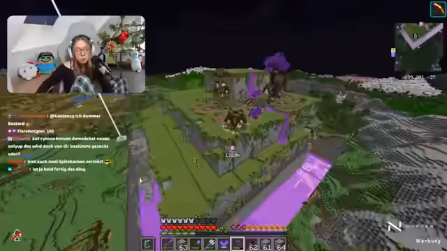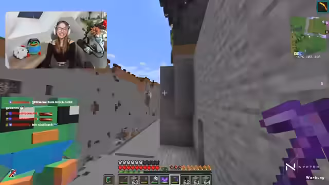 08:52:34Es kommt zu einer Diskussion über den Minecraft-Server, auf dem beide spielen. Es geht um einen Vorfall, bei dem dem Streamer vorgeworfen wird, Ressourcen (Glas) illegal abgebaut zu haben. Die Situation eskaliert leicht, wobei der Streamer beteuert, unschuldig zu sein und die Sache durch einen administischen Schritt klären zu wollen.