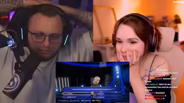 04:14:20Die Quizrunde verlagert sich schnell zu deutlich schwierigeren Fragen, die eine tiefergehende Allgemeinwissen erfordern. So wird nach einem alten Wort für Zeitungen gesucht, wobei die Teilnehmer anfangs unsicher sind, entscheiden sich aber letztlich für 'Gazetten'. Eine weitere Frage über den Turm von Babylon wird dank des 12-jährigen Religionsunterrichts einer der Teilnehmer korrekt beantwortet. Später wird bei einer Frage nach einem deutschen Wort für Hochzeit spekuliert, bevor die Teilnehmer ihre Hochzeit im Jahr 2027 ankündigen. Bei Fragen wie nach dem Sprecher von Maui in Vaiana (Moana) werden die Telefonjoker eingesetzt, aber erweisen sich als unzuverlässig, da sie die Teilnehmer öfter täuschen als richtig beraten.