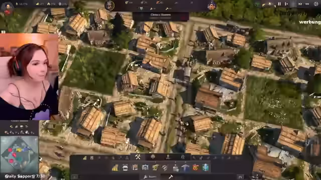 01:07:04Auf Wunsch der Community beginnt die Streamerin mit einem Anno 1800-Spiel. Sie stellt fest, dass ihr alter Spielstand 'verflucht' war, da die einzige Insel mit Zuckerrohr von Verbündeten besiedelt wurde und sie keine Importe wollte. Sie startet daher einen neuen Spielstand, um unvoreingenommen zu beginnen. Ihre ersten Schritte in der Landwirtschaftsära sind das Bauen von Häusern und das Einrichten von Straßen, wobei sie sich zunächst zurechtfinden muss.