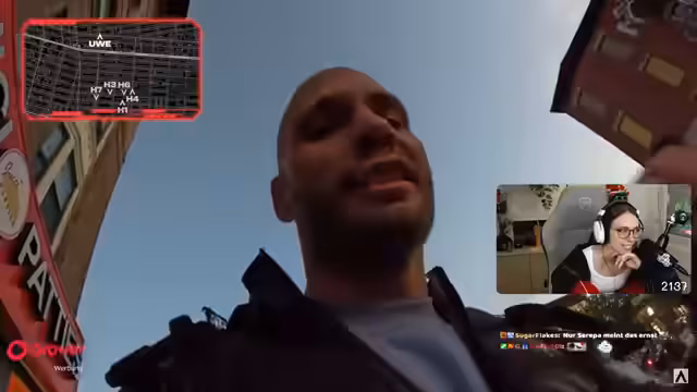 03:43:51Die Jäger verfolgen einen Spieler (Uwe) in Echtzeit. Nach Sichtkontakt wird diskutiert, ob ein Fahrrad genutzt werden darf. Koordinationsaufrufe an das Jagdteam folgen, um Fluchtwege abzuriegeln. Der Spieler bewegt sich Richtung Manhattan, während die Jäger Strategien wie Speed Hunts besprechen, um die verbleibenden drei Teilnehmer (Daniel, Annika, Uwe) zu stellen. Der Streamer kommentiert aufgeregt die Bewegungen und äußert Bedenken wegen der Nähe zu Checkpoints.