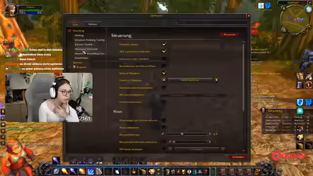 01:20:01Felika und Merle diskutieren die komplexen Einstellungen von MrMorgame, insbesondere die Aktionsleisten 2-5, die sie aktivieren müssen. Sie konfigurieren die Gameplay-Steuerung, aktivieren schnell plündern und besprechen die Loot-Mechanik via Rechtsklick. A und D werden für Seitenschritt neu belegt, während Bewegungstasten überprüft werden. Der Chat empfiehlt, die Lebensleisten per V-Taste anzuzeigen und Questtext sofort in den Optionen zu aktivieren.