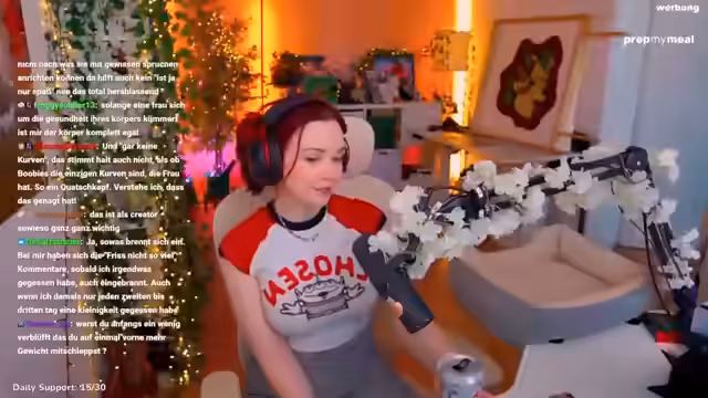 00:24:54Die Streamerin bedankt sich für die Unterstützung und entschuldigt sich für die Technikprobleme des vorherigen Streams. Sie geht auf Kommentare zu ihrer Körpergröße ein und erklärt, wie sie ihre geringe Größe (1,56m) im Vergleich zu alltäglichen Gegenständen wie Türklinken visualisiert, um den Zuhörern ein besseres Verständnis zu vermitteln. Es wird über den Verlust von Freundschaften durch übermäßigen Alkoholkonsum und Ausgrenzung gesprochen. Die Streamerin teilt ihre persönliche Erfahrung, wie sie sich von einem feierorientierten Freundeskreis distanziert hat, um ihre eigenen Interessen und ihre Persönlichkeit wiederzufinden. Es wird eine Regel für den Chat eingeführt, wonach "Stänkern" (kritisieren oder necken) mit dem Verschenken von Abonnements an andere Nutzer "bezahlt" werden muss.