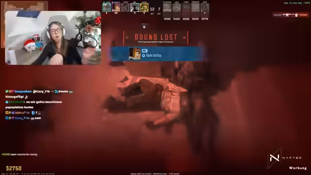 04:45:40Einige ernste In-Game-Situationen werden durch unabsichtliche Pannen zunichtegemacht. Dazu gehören unklare Anweisungen an den Teamkollegen Lukas, die zu Konfusion und Eliminierungen führen. Der Chat reagiert auf diese Fehler mit den Begriffen 'Heilige Scheiße' und 'Oh mein Gott', was die emotionale Aufregung widerspiegelt.