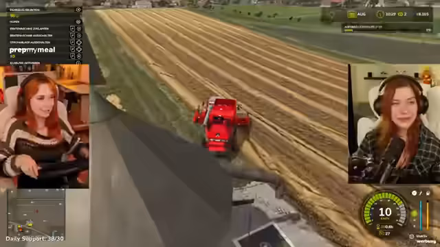 07:07:32Im Verlauf des Farming-Simulator-Streams entsteht spontan eine humorvolle Idee: Gründung eines weiblichen E-Sports-Teams für die Gamescom. Die Streamerin und ihre Zuschauerin Lena überlegen, unter welchem Namen sie antreten könnten, wie viel Preisgeld es zu gewinnen gibt und welche Rolle sie im Team einnehmen würden. Die Stimmung ist verspielt und ambitioniert, was einen spielerischen Kontrast zur vorherigen ernsten Diskussion über Content-Strategie bildet. Der unerwartete Erfolg im Spiel und der Spaß an der gemeinsamen Tätigkeit werden als Beweis für die positiven Aspekte ihrer Community gewertet.