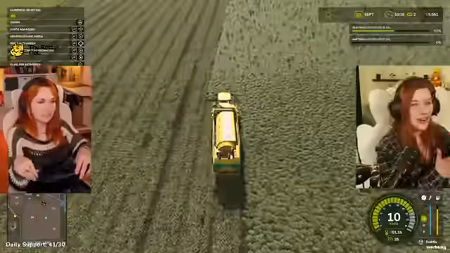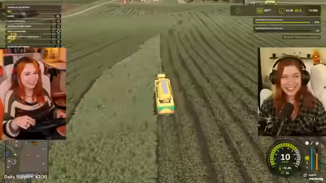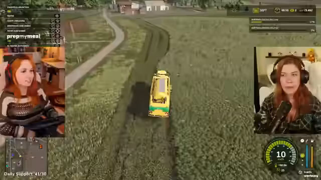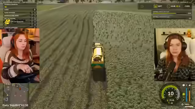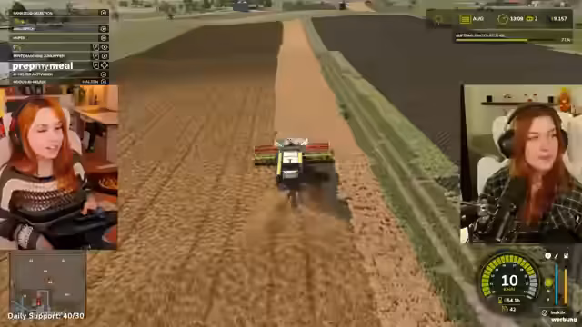 04:42:18Die Streamer kehren zum Farming Simulator zurück, stoßen aber auf mehrere Probleme. Zuerst ist unklar, wie man nach dem Grubbern das Feld richtig vorbereitet, da Walzen und Düngen nötig sind, was zu Verwirrung führt. Später gerät der Traktor mehrmals fest, was ein Zurücksetzen erfordert. Während der Arbeit wird über den Einsatz von gepachteten Geräten gesprochen, um effizienter zu sein, und es wird über die hohen Kosten von Geräten wie Sämaschinen diskutiert. Die Navigation auf der Map wird als schwierig empfunden, besonders bei der Suche nach dem nächsten Feld und der Umfahrung von Hindernissen wie Zäunen.