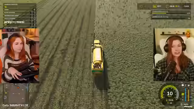 02:31:26Die Streamerin übernimmt einen Düngerauftrag, um zusätzliche Einnahmen zu generieren. Dabei wird Mineraldünger im Shop gekauft und der Trecker beladen. Bei der Ausführung des Auftrags treten mehrere Probleme auf. Die Bedienung des Düngers gestaltet sich schwierig, insbesondere da die korrekte Absenkung des Rohrs nicht sofort gefunden wird. Außerdem wird versehentlich zu viel Dünger verschwendet, was durch die fehlende Anzeige des bereits gedüngten Bereichs begünstigt wird.