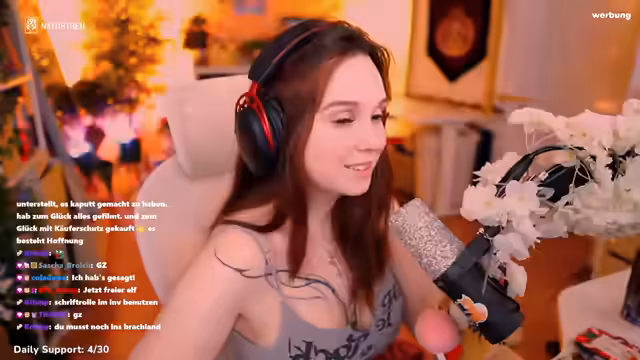 01:13:45Die Streamerin erzählte sehr offen über ihre Brustvergrößerung, die sie auf Grund von Bemerkungen eines ehemaligen besten Freundes vornehmen ließ. Sie hatte sich durch dessen Kommentare über ihren 'Kinderkörper' unsicher gefühlt und litt unter geringem Selbstwertgefühl. Die OP führte zu einer starken Steigerung des Körperbewusstseins und der Selbstzufriedenheit. Sie betonte, für mehr Transparenz in solchen Themen zu sein und bereit, alle Fragen der Zuschauer zu beantworten. Gleichzeitig wurde die emotionale Abhängigkeit in Beziehungen thematisiert.