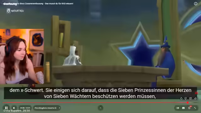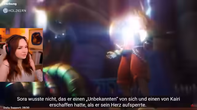 02:45:38Eine Live-Umfrage im Chat entscheidet, ob vor dem Gaming ein 30-minütiges Hintergrundvideo zu Kingdom Hearts gezeigt wird. Nach kurzer Abstimmungsphase stimmt die Mehrheit für das Video, um die Story besser zu verstehen. Der Streamer plant, das Video mit deutschen Untertiteln abzuspielen und bereitet sich auf die Wiedergabe vor. Die Entscheidung fällt zugunsten des Recap-Videos aus, bevor mit dem eigentlichen Gameplay von Kingdom Hearts 3 begonnen wird.