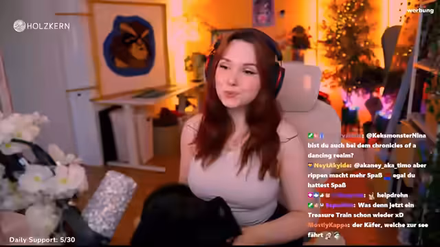 01:12:09Feli gibt bekannt, dass sie nun offizielles Mitglied einer wöchentlichen D&D-Runde ist. Durch eine Freundin fand sie Ersatz für eine gesuchte Paid-Kampagne, die 14 Euro pro Session kostet und über Roll20 mit Spielern aus den USA, Tschechien und einem dänischen DM läuft. Als Charakter plant sie einen Barden mit einem Babydrachen als Pet und freut sich auf dieses neue Hobby, das sie separat vom Stream pflegen wird.