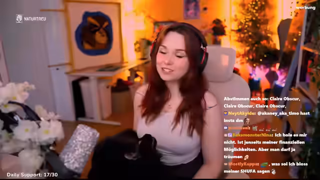 01:58:31Feli äußert sich kritisch über aktuelle Spiele, erkennt aber Titel wie 'Claire Obscure' (Game of the Year) und 'Witcher 4' als qualitativ hochwertig an. Sie verweist auf den Link zum Fantasyball-Kleid in Discord und betont, dass Indie-Spiele oft mühsam zu finden seien. Gleichzeitig kündigt sie an, nach dem Stream mit Kingdom Hearts 3 fortzufahren und Chonk für supportive Subs zu belohnen.