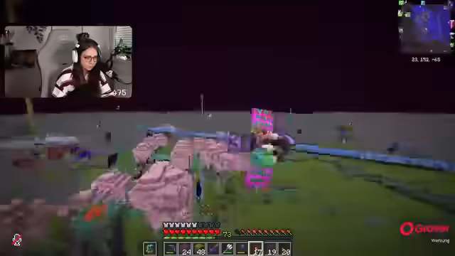 01:33:18Für den Innenausbau benötigt der Streamer viel Glas. Da er nicht mehr genug auf seiner eigenen Farm hat, beginnt er eine Suche auf dem Server. Er prüft die Basen anderer Spieler wie Basti Gergi und Pfeister auf Glas. Eine Idee ist es, Glas mit Hilfe von Dorfbewohnern zu handeln. Zuerst wird jedoch versucht, Glas direkt von anderen Spielern zu klauen, was als einfacher angesehen wird.