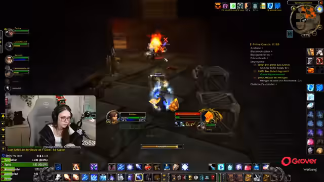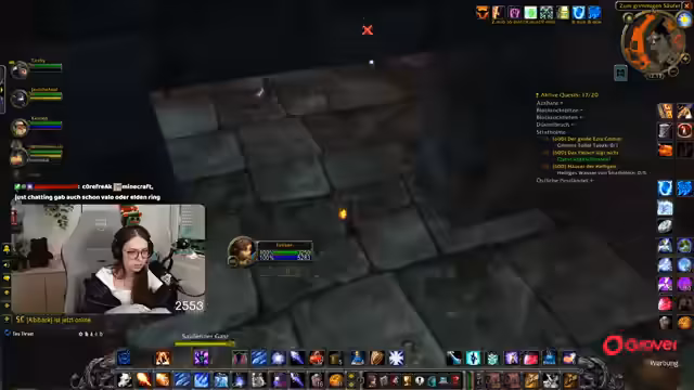 05:03:20Die Gruppe kämpft weiter durch den Dungeon und konfrontiert den nächsten Boss, "Chef Ruhl", den der Streamer als "Gammler" bezeichnet. Es folgen taktische Erläuterungen für den Kampf mit den "Gambler", welche Magier sofort töten und Heiler unterbrechen. Nach einem erfolgreichen Kampf diskutieren die Spieler über alternative Drops, insbesondere eine "Brustplatte", die Teekeks bekommt und die Wakayashi bereits erhalten hat. Dies führt zu Frustration beim Streamer, der die unfaire Verteilung von Loot kommentiert und an seiner eigenen "Beschissenheit" zweifelt, während andere im Team Items bekommen. Schließlich wird über den Weg zu einem Dungeon namens "Scholomance" und das Benötigen von Materialien wie Portalsteinen gesprochen, die neu gekauft werden müssen.