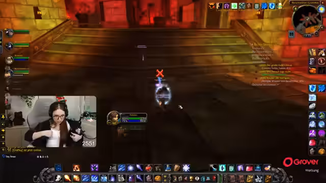 04:29:25Der Streamer bewegt sich im Dungeon 'Wettler' (Molten Core) voran und diskutiert Taktiken für den Boss 'Golemagg'. Es geht darum, wer wie viel Schaden macht und wer den Agro ziehen darf. Anschließend wird der Boss 'Razzashi' in 'Scholomance' angegangen. Die Taktik ist, ihn im oberen Raum zu spielen, jedoch gibt es Probleme mit einem 'Reset', nachdem der Kampf unterbrochen wurde. Es wird eine Neustrategie mit einem 'Blind'- und 'Shackle'-Pull geplant.