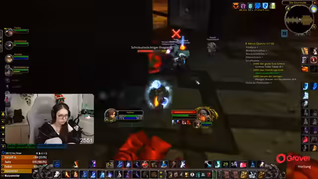 05:41:57Zu Beginn des Streams geht es um den Eintritt in den Dungeon 'Scholomance' mit dem strategischen Ziel, über den Hintereingang, das sogenannte 'Dienstbotentor', in den Bereich 'Living' zu gelangen. Die Gruppe diskutiert eine besonders lohnende Quest-Chain, die einen sehr wertvollen Hals-Slot als Belohnung verspricht. Dabei wird auch das Vorgehen bei der aktuellen Boss-Begegnung erörtert, bei der man sich von einem Elitemob angreifen lassen muss, da das Spiel sonst abstürzt, und eine Diskussion über die Nutzung von PvP-Flags im Stream.