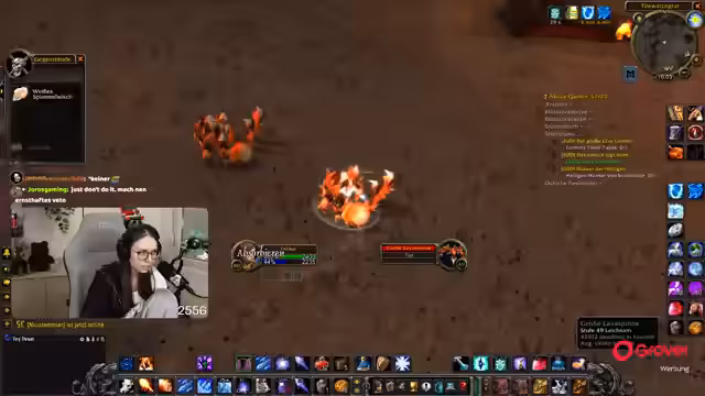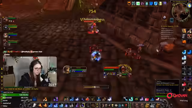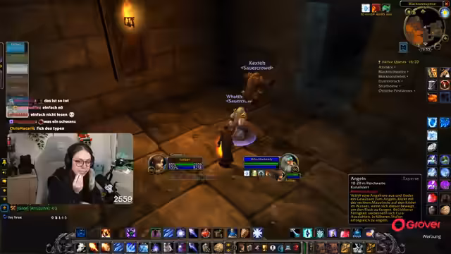 Ein positives Highlight ist das Erreichen von Level 60 durch ein Gildenmitglied. Für den weiteren Ausbau des Streams werden nun Materialien wie Spinnenfleisch für die Koch-Skillung gefarmt. Dafür wird in der Sengenden Fickschlucht gesammelt.