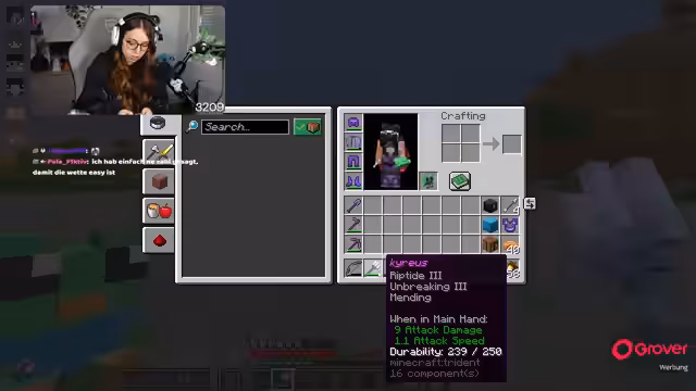 03:16:24Die Teilnehmer einigen sich darauf, Diamanten direkt abzubauen, anstatt Silk Touch zu verwenden, da dies als Zeitverschwendung angesehen wird. Die Wette läuft und die Kanalpunkte der Zuschauer werden auf die verschiedenen Teilnehmer verteilt. Es wird humorvoll über die 800 Euro gesprochen, die ein Spieler für Diamanten ausgegeben hat, ohne den ersten Platz zu erreichen. Während des Farmens treten technische Probleme auf, insbesondere mit der Steuerung und dem Treffen von Löchern in Minecraft. Die Suche nach einer guten Höhle gestaltet sich schwierig, und es wird über verschiedene Taktiken wie das Farmen am Spawn oder in Unterwasserhöhlen diskutiert. Die Teilnehmer tauschen sich über ihre bisherige Diamantenausbeute aus und es wird deutlich, dass einige mehr Glück beim Finden von Diamanten haben als andere.