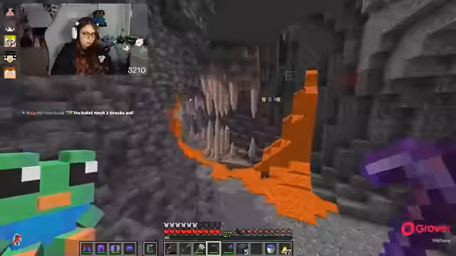 06:04:29Der Streamer kündigt eine neue Challenge an, ähnlich der letzten, bei der bestimmte Gegenstände pro 50-Euro-Spende gesucht werden müssen, was voraussichtlich lange dauern wird und ein frühes Offline-Gehen ausschließt. Kurz darauf entdeckt er eine riesige Höhle, die ihn begeistert. In dieser Höhle findet er Diamantenerz und äußert die Befürchtung, dass dort Warden spawnen könnten. Die Textur des Diamantenerzes ist verändert, was für kurze Verwirrung sorgt. Er findet eine Ancient City, während er nach Diamanten sucht, und fragt sich, ob es sinnvoll ist, diese für Diamanten abzubauen, da dies den Abbau von Spawnern erfordern würde. Ein Spinnenspawner stört ihn dabei erheblich.
