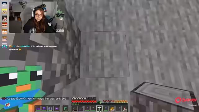 11:19:54Ein Streamer besucht die Base des anderen und fragt nach dem Lager. Es wird eine unkonventionelle Lagerung mit 'random Kisten' und einem Pfeil im Kopf des Spielers beschrieben. Die Suche nach einem geheimen Knopf für ein Passwort-System, das mit 'Mauken, Mauken, öffne dich' funktioniert, sorgt für Heiterkeit. Die schlechte Ausleuchtung und die Schwierigkeit, den Knopf auf schwarzem Hintergrund zu erkennen, werden thematisiert. Es wird auch über ein 'Autolager' gesprochen und die Schwierigkeiten, Blöcke auf dem Boden zu platzieren.
