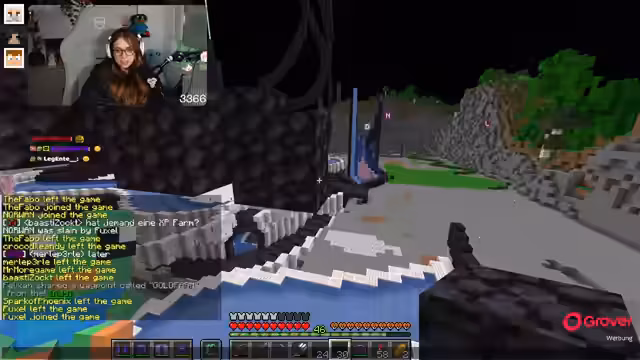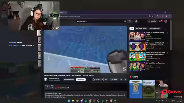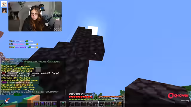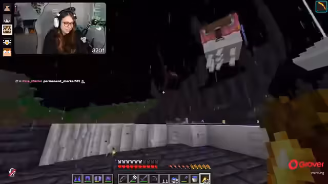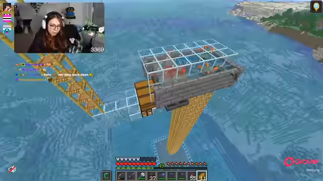 15:03:38Der Bau der Guardian-Farm wird fortgesetzt, wobei der Streamer versucht, einen Waypoint zu setzen und die benötigten Materialien wie Scaffolding und Soul Sand zu sammeln. Es treten technische Schwierigkeiten auf, da die Guardians den Streamer angreifen und die Unsichtbarkeitstränke nur begrenzt wirken. Der Abbau eines Portals in der Nähe der Farm erweist sich als kompliziert, da die Guardians ständig attackieren. Es wird überlegt, wie man die Farm am besten fertigstellt, um die Angriffe der Guardians zu minimieren. Der Streamer muss immer wieder die Rüstung anziehen und Tränke verwenden, um nicht zu sterben. Die Notwendigkeit, ein weiteres Portal auf der Decke umzulegen, wird erkannt, was den Bau weiter verzögert. Es wird auch über die Reparatur der Elytra nachgedacht, da diese durch die Angriffe beschädigt werden könnte.