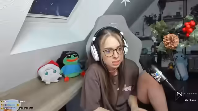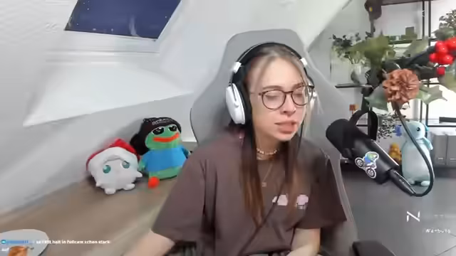 04:38:48Die Streamerin erklärt, dass sie kaum Platz für eine gute Kamera hat, da ihr Bildschirm direkt an der Wand steht und eine Dachschräge im Weg ist. Sie zeigt ihr aktuelles Setup und erklärt die räumlichen Einschränkungen. Es wird überlegt, ob ein Umzug die einzige Lösung für die Setup-Probleme ist. Die Streamerin zeigt, wie sie vorher gestreamt hat, um den Unterschied zur aktuellen Qualität zu demonstrieren. Sie erklärt, dass ihr Zimmerlicht flackert und sie deswegen nicht damit streamen kann. Es wird mit einem weißen Twitter-Hintergrund experimentiert, um die Beleuchtung zu verbessern. Ein Raid von Glockengießer wird erwähnt, der sich gerade im Urlaub auf Malta befindet. Die Streamerin plant, ihr Setup zu verändern, da es unzureichend ist. Sie überlegt, ob sie zur Gamescom fährt und ob sie dort Leute treffen wird. Abschließend wird festgestellt, dass das aktuelle Setup unzureichend ist und ein Auszug in Betracht gezogen wird.