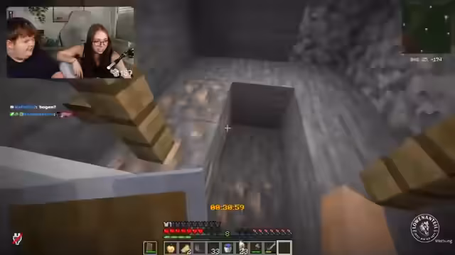 03:08:01Bei der Jagd auf den Enderdragen kommt es zu erheblichen Problemen. Die Spieler sind im Nether desorientiert und finden sich aufgrund der unübersichtlichen Kartendarstellung und der schnellen Bewegung immer wieder auf dem falschen Weg. Die koordinierte Jagd auf die Endermen wird als extrem stressig empfunden und endet in der Frustration beider Spieler. Die Stimmung kippt stark, und sie beschließen den Stream vorzeitig abzubrechen, um die Nerven zu schonen.